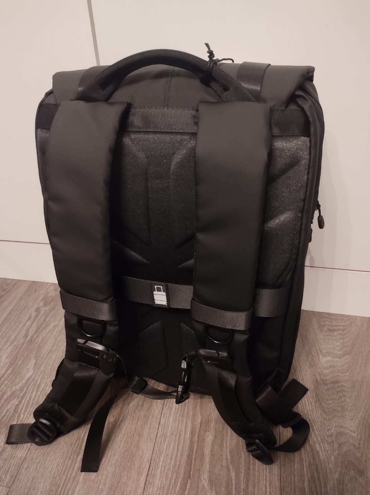 Como usuario de mochilas y después de probar ésta, he de decir que tiene cosas muy buenas y al guna que otra cosita por pulir, pero a grandes rasgos es muy buena mochila, ya que la mochila perfecta no existe.Pasamos al aspecto exterior, el cual tiene una estética elegante a la vez que casual, con la incorporación de correas y hebillas metálicas que realzan con el negro de la mochila. Contamos con unas correas en la parte inferior para poder llevar extras, como puede ser un trípode, una chaqueta, un chubasquero, etc.En el lado izquierdo tenemos un bolsillo para acceder rápidamente a la cámara, el cual es genial en caso de pasar a la acción en segundos, ya que no es necesario quitarse la mochila de la espalda y abrir toda la mochila.En el otro lateral tenemos un bolsillo que es perfecto para poner una botella de agua, pañuelos, etc.En la parte superior tenemos un bolsillo amplio para llevar los accesorios, como filtros, disparadores, cables, etc…También tenemos un asa para transportar de la mano, con un ligero acolchado.En la parte de la espalda, tenemos un acolchado generoso y con una disposición y forma que favorece la aireación de la espalda. Tenemos los tirantes para colocarnos la mochila en la espalda que tiene también un acolchado perfecto, siendo bastante anchas repartiendo así el peso y siendo mas cómodas. Se pueden ajustar en altura.Para acceder al compartimento interior, tenemos la cremallera junto a la zona de la espalda, lo cual es bastante seguro de cara a que nos puedan abrir la mochila, ya que nos daríamos cuenta si alguien intenta acceder.El interior es todo acolchado y cuenta con separadores modulables, lo cual me parece estupendo ya que poder adecuar la mochila a tus gustos o a tu material fotográfico, es todo un acierto y lo que te hace que utilices una mochila realmente a gusto.Tenemos un compartimento acolchado para guardar el portátil, con un tamaño máximo de 15.6”.Contamos con dos correas para colocar opcionalmente. Estas correas se sitúan en el interior y que ayudan a que no se abra del todo la parte de la mochila que lleva todo el peso (material fotográfico), cuando la abrimos situada en la parte del pecho, sin quitárnosla.Está realizada con material resistente al agua, y además contamos con una cubierta para reforzar mas la seguridad contra el agua.Una mochila muy buena y que tiene un precio realmente justificado y correcto.