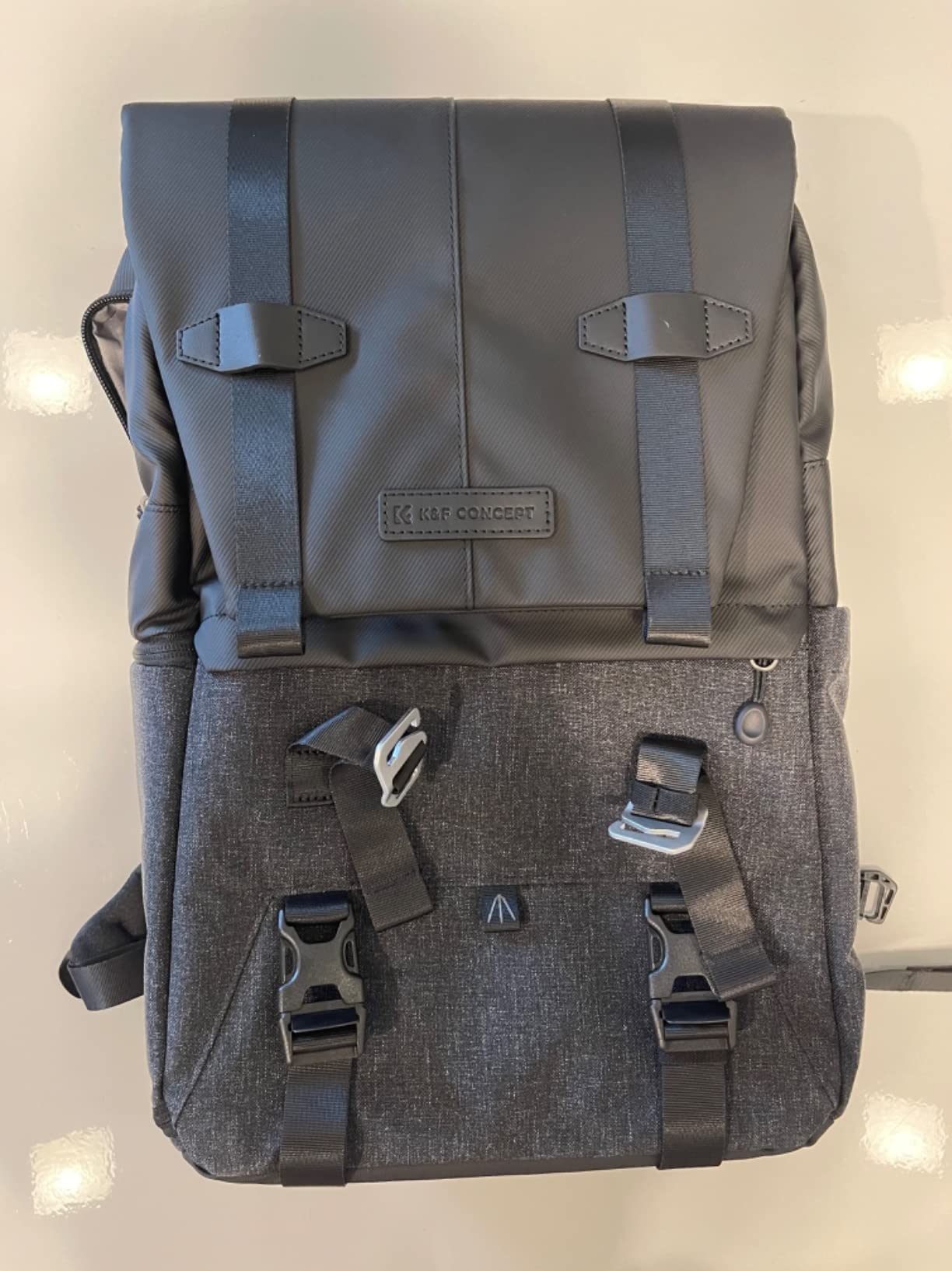 Sac de bonne qualité, sobre et élégant de l'extérieur et très pratique pour les photographes qui passent du temps à l'extérieur avec leur matériel.