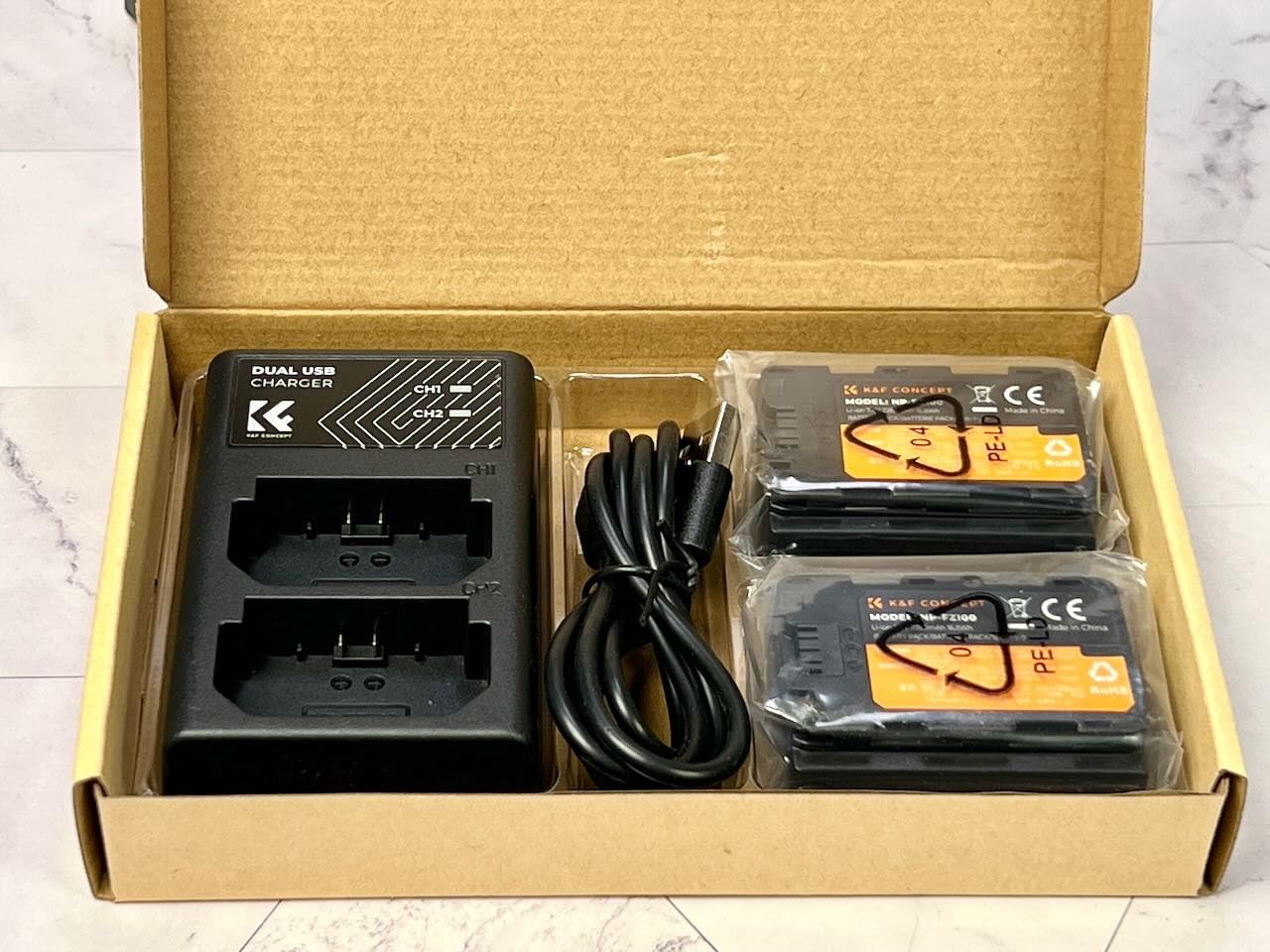 I have been impressed with K&F products in general and this one is no exception. The charging station takes two forms of USB cable and has easy to see indicator lights. The charging takes the same amount of time as the OEM. The batteries operate the same as the OEM batteries. They check-out in my Sony A7r. I have included a picture comparing the two batteries front and back. The batteries appear to be manufactured well with crisp plastic molding and good contacts.