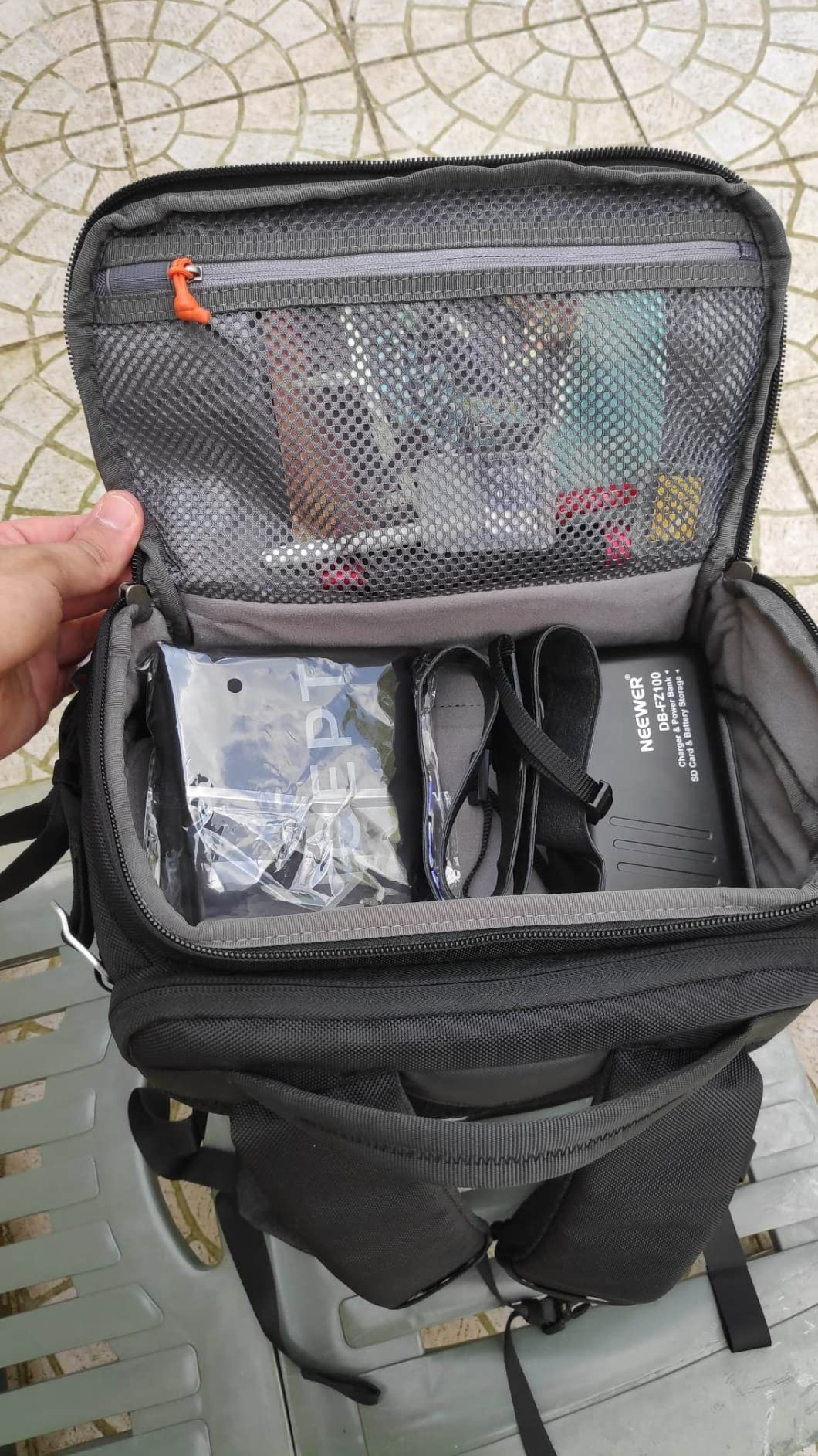 Here's my initial review after the first few days of use. This bag is very well-made with no obvious flaws or defects. The pockets are very well-planned and useful. However, I have yet to fit my camera gear in there. The camera compartment dividers, while sticking very well to the inside walls of the bag, they don't stick well to each other at all. Currently, I'm having a hard time trying to divide the camera compartment because the provided dividers don't work well with each other, especially the long one. I directly copied the two photos in the listing and the dividers don't seem to stay together well or it blocks the camera access door on the side. I'm deducting one star from the rating.Another perplexing thing is why the zippers of the expanding front pouch cover up the zipper into the pouch itself. Most of the time, the expansion zippers tend to be secondary to the access zipper to a compartment. However, with this bag, you have to unzip the expansion zipper in order to get into the front pouch zipper. I suppose that you can leave the zippers to the pouch open and use the expansion zipper as access to the pouch itself. Though I can see instances when I might scratch my hand over the inner open zipper to grab something from the pouch. This is not a deal breaker.I will post a proper review video of this bag since there are a lot of features that I like. I will have to empty out the other camera bag and use the dividers from that bag instead of what was provided. More updates soon.