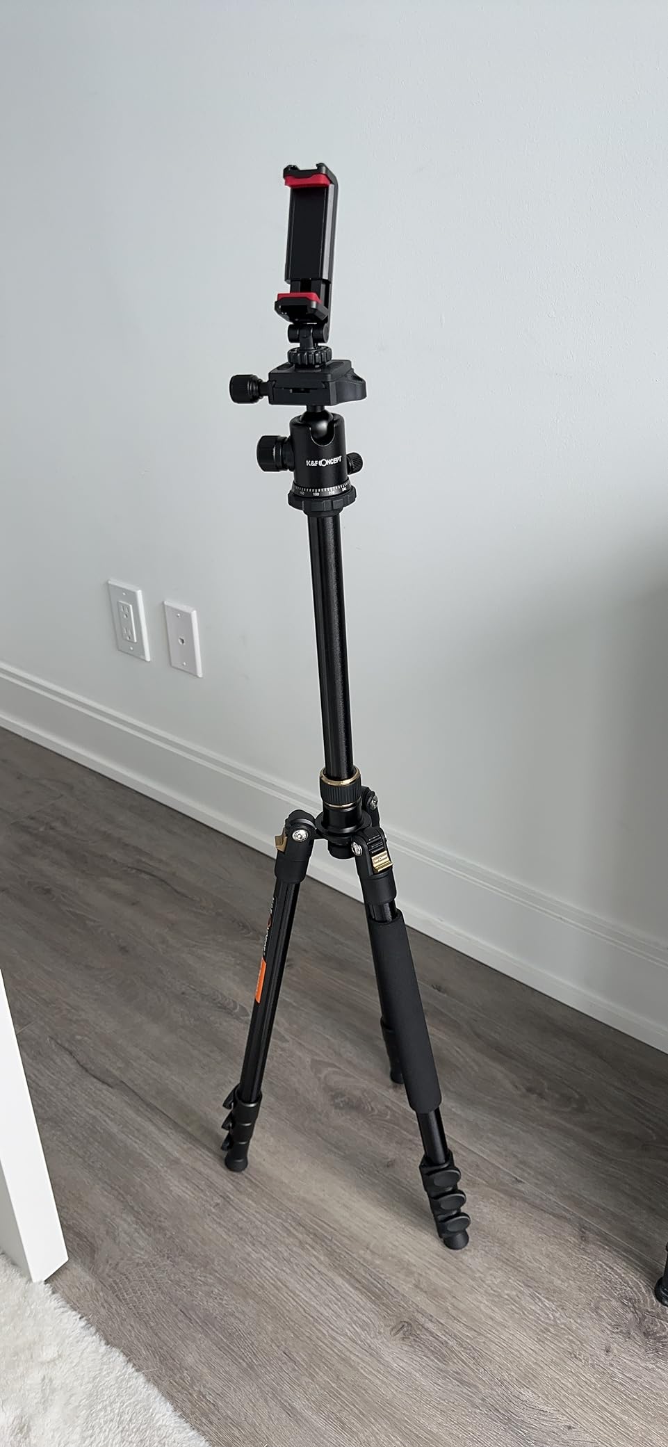 K&F Concept 72" Camera Tripod with Phone Mount & Remote, Aluminum Travel Tripod Monopod with 360° Ball Head, Quick Release Plate, 22lbs Load for DSLR iPhone