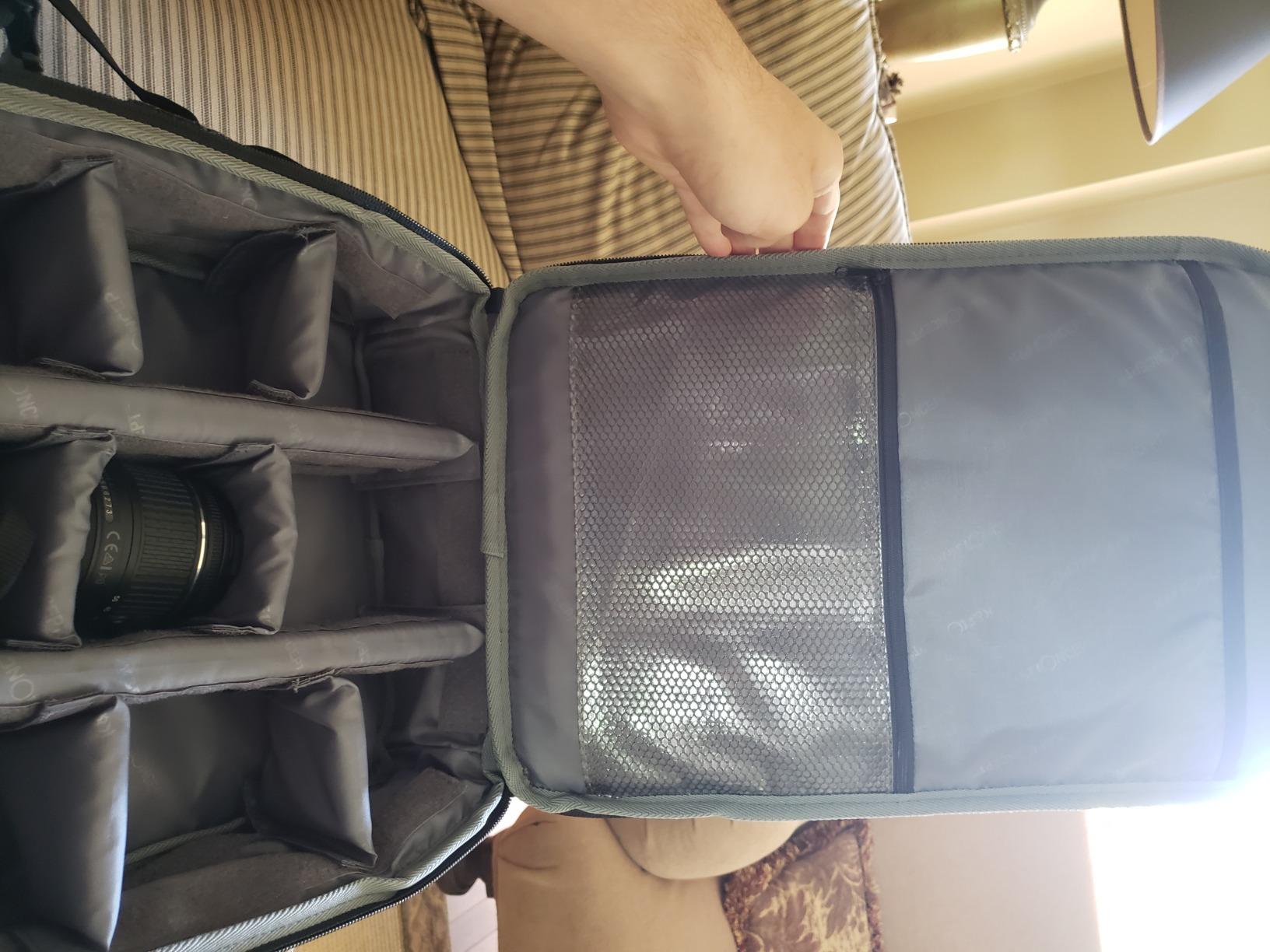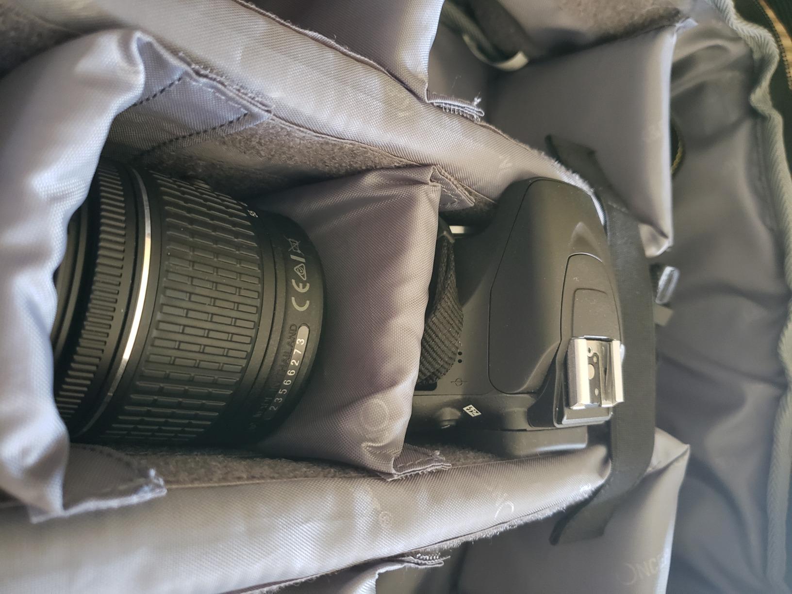 I really like this camera backpack. Lots of space for camera, multiple lenses, charging station and batteries, etc.. It has a rain cover that fits over the entire bag which is great. It's very comfortable to wear. Very light and even weight distribution. I consider this a great purchase.