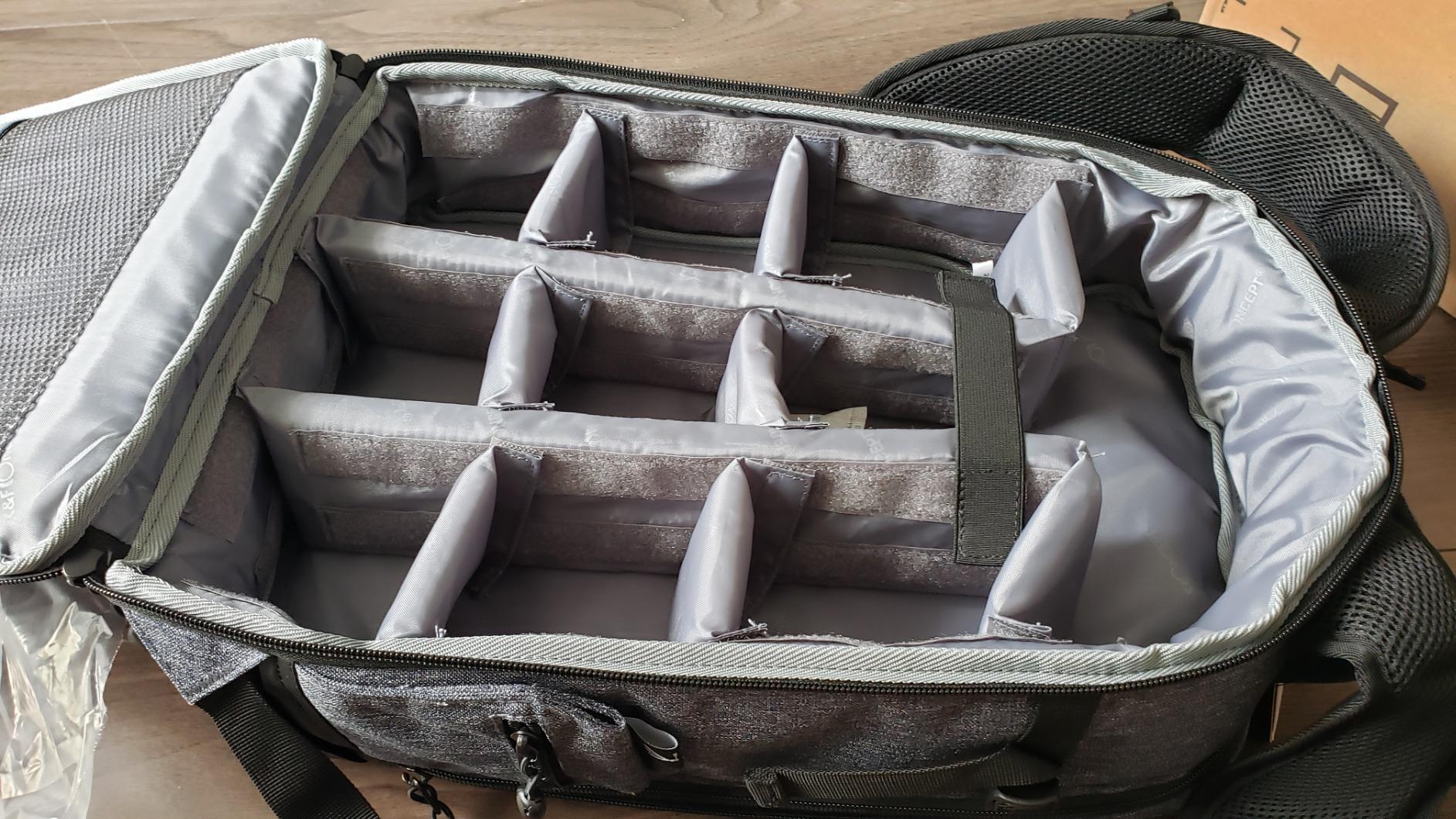 I wanted a bag to be a personal item on aircraft, leaving me with a carry-on item available for clothes and other travel accessories, and this bag meets those requirements.I am disappointed that the longest dividers are longer than I want, and there are no dividers that are slightly shorter. Two thirds the length would have been much better for my use, to leave space above the camera for a rain jacket or light sweater. I will have to try to find a way to have them modified.