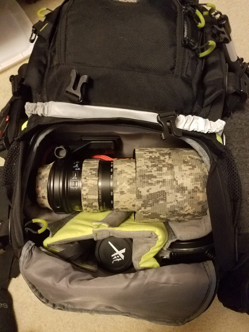 I have been looking for a decent backpack that could carry a pro body and a couple of lenses. I was able to fit two bodies and three lenses including an 80-200 f2.8. There was still plenty of room to carry chargers, filters, extra memory cards etc. I also really like that there is the possibility to carry a tripod as well. It's still small enough to carry on to an airplane and store in the overhead bin. Overall, this is a great backpack and I highly recommend it.