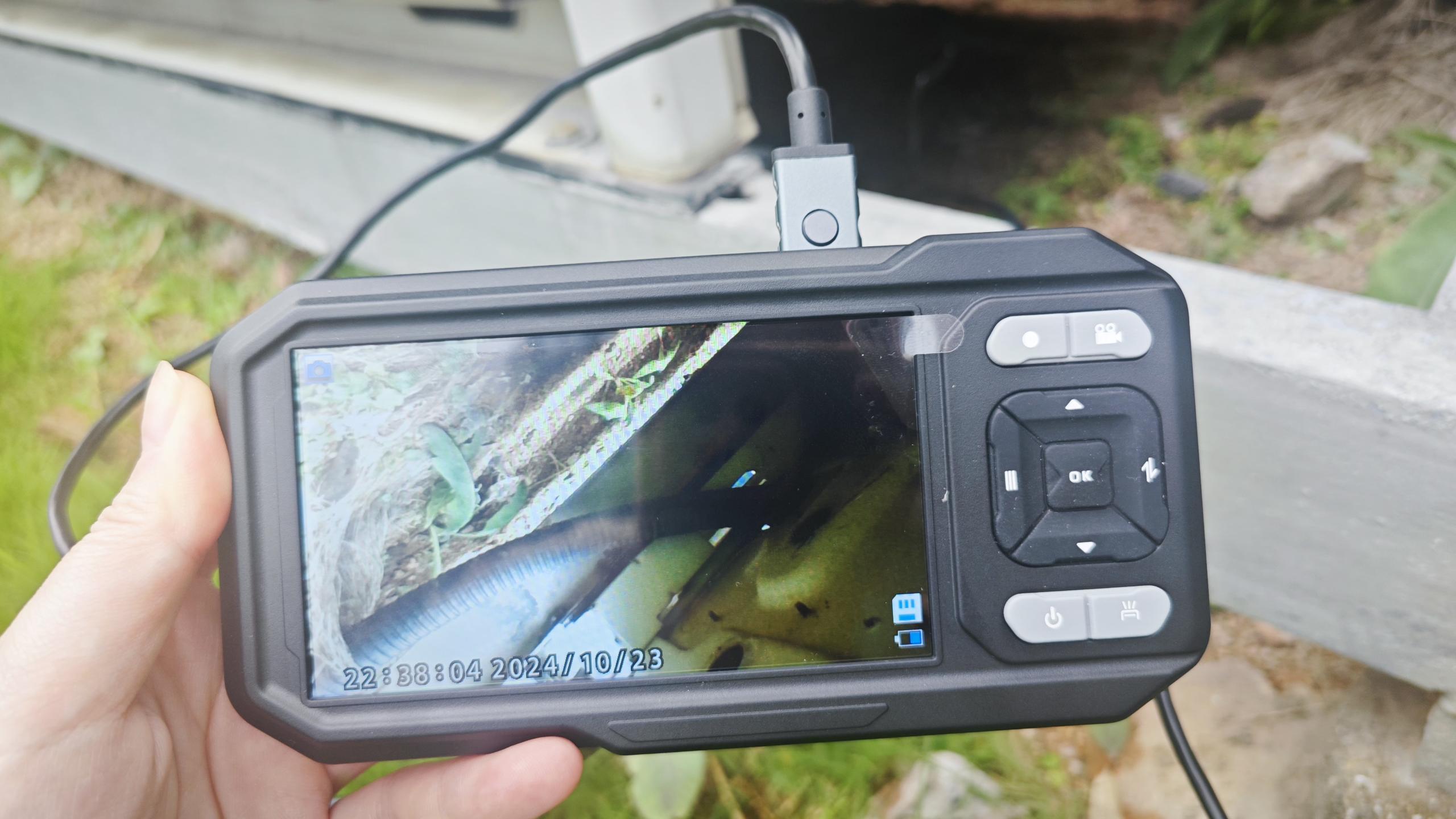 The semi-rigid cable holds its shape well, making it easy to guide through pipes. The side camera is perfect for tight bends. A very functional design!