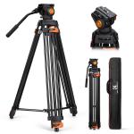 2m/8kg Entry-level Vedio DV Camera Tripod 20mm Diameter 3-section Double-row pipe Round non-slip Pad 70mm Bowl Diameter Pitch Damping Adjustment, VA3+BV70, K&F CONCEPT