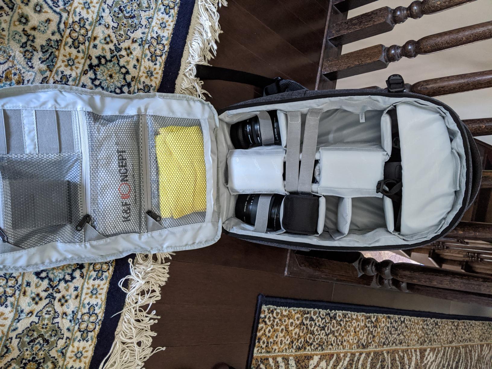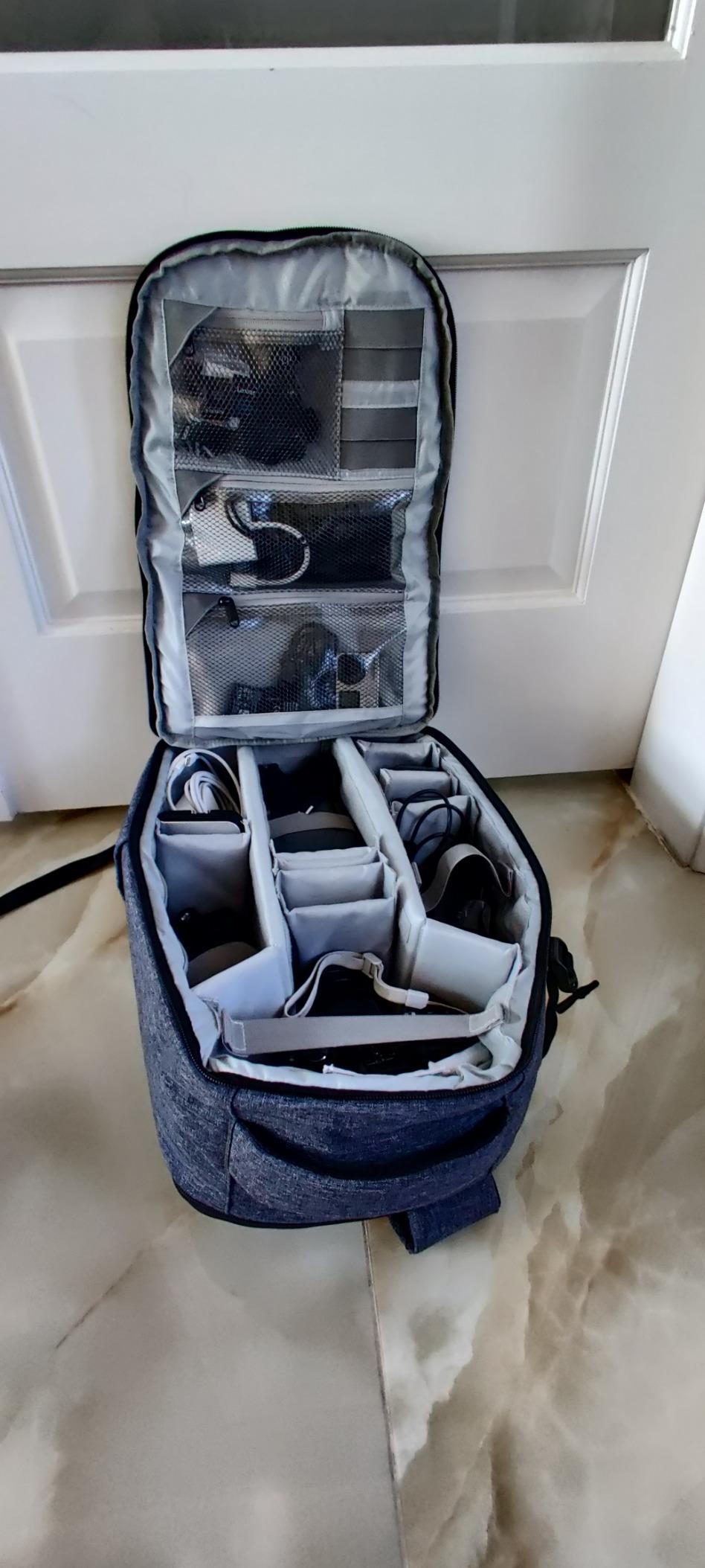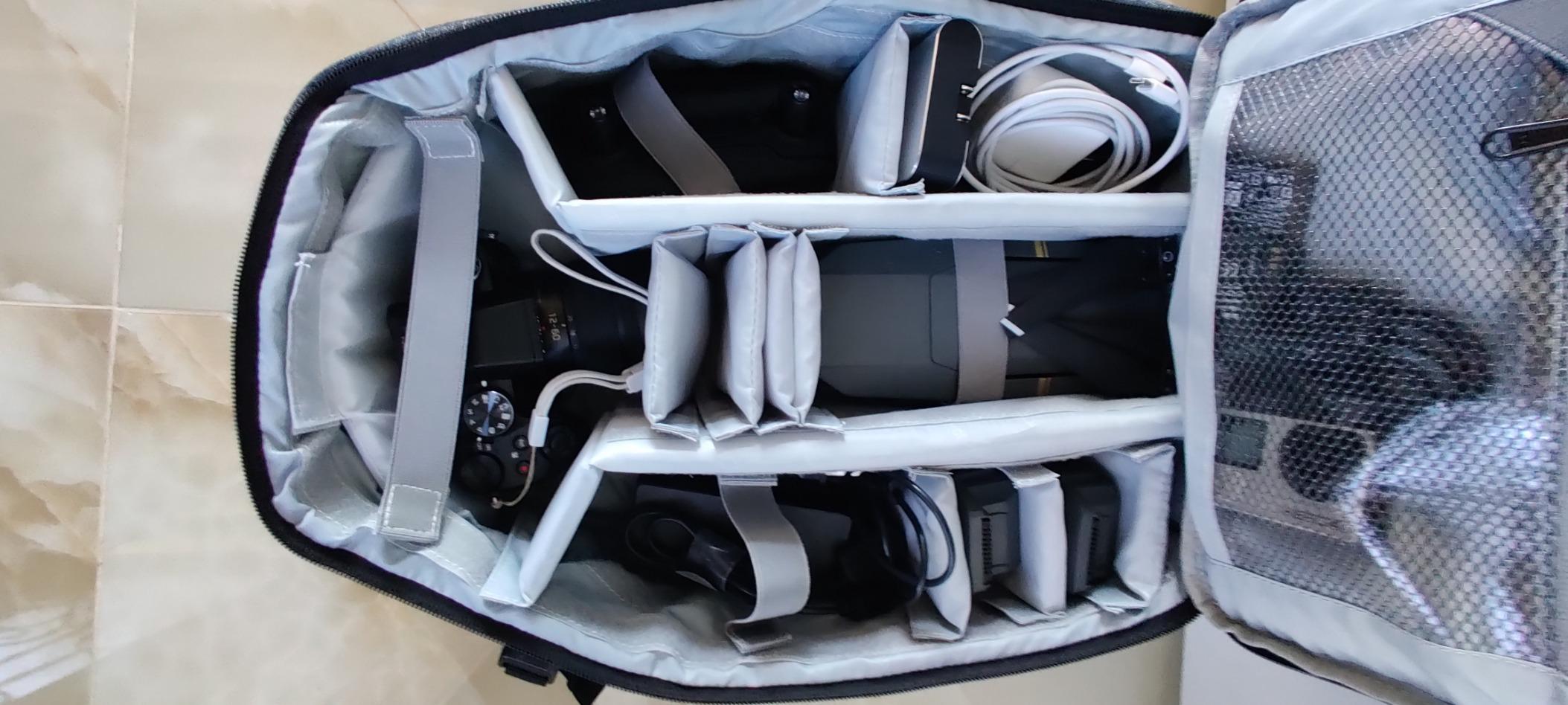 When I received the bag, I was impressed by how compact it was. The adjustable dividers allow it to be customized for your gear. The rain cover is a nice addition. The straps are comfortable and we'll padded. The laptop pocket is very padded to protect your laptop