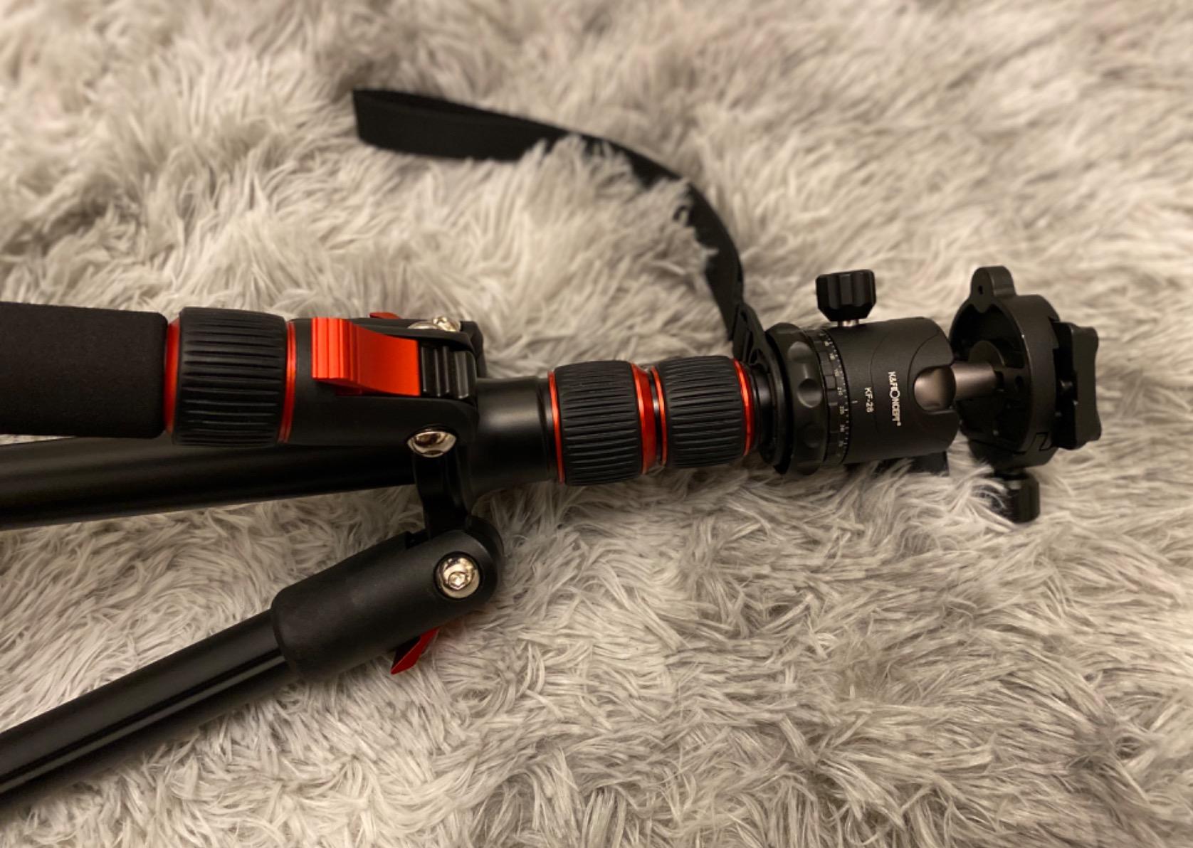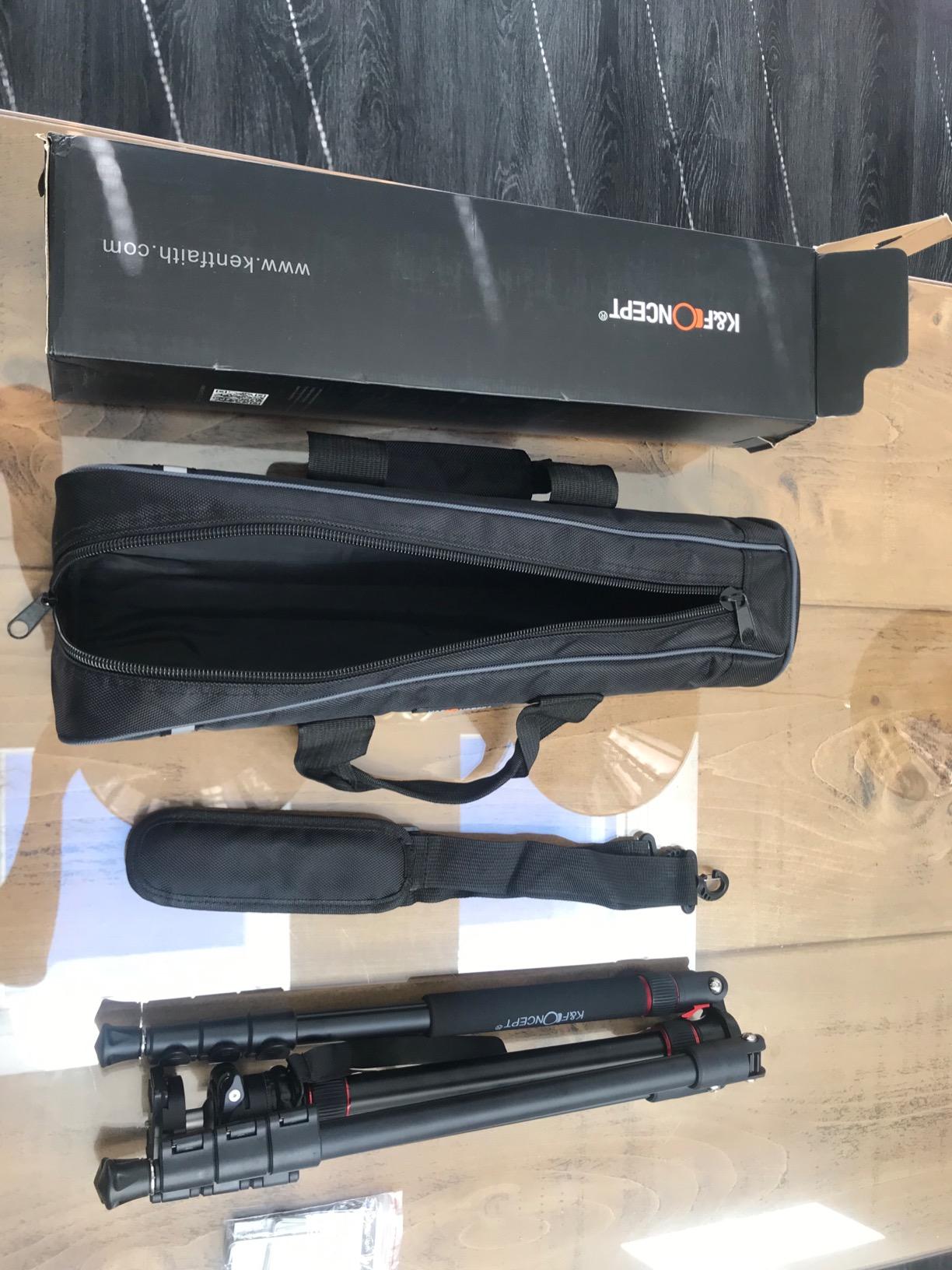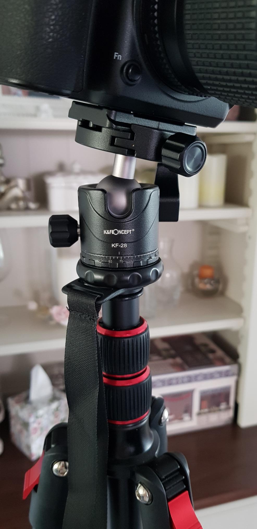 Review of the K&F Concept KF-28 Tripod.This is my third tripod. Ignoring my first, my previous one was a Giotto MH5011. My first thoughts were less weight in the KF-28 was welcome. My present SLR camera is close to a whopping 1.6kg weight, lens and all, so I am mindful of my overall kit weight. That being noted, my camera is old stock and newer cameras will have a different feel on this rig.The packaging was excellent and the mini-case welcome – I had to buy my previous case separately at some cost. Very pleasant to have the full kit to go, backstrap and handles too. Well done K&F.I liked the black with red flashes design and was pleased to see the bottom hook for stabilizing. I use mine to keep stuff off the ground, or within my workspace in public areas. Just me? The legs handle well and intuitively. Not being one to read manuals (even though this one comes with 4-sided A5 leaflet in English) I twisted and turned knobs until I understood what they did. My only reference need was the base column lock.This is the first ball rig I’ve had hands on. I was looking forward to the angles. My camera was too weighty for my Giotto to handle 90o tilt, or any tilt much. The KF-28, at first, seemed no better. Perhaps my girly hands or just overcaution but I wasn’t tightening the knobs and screws sufficiently. I had to resort to screwing the baseplate to my (hefty) camera with a coin but it all came together in the end. I wouldn’t like to be doing all that on a shoot at night though. Advance learn the equipment, people. At max height it will fill a door frame and in extreme it seems more delicate than it probably is. It will also meet tabletop requirements but as an eye-line type photographer that’s fine with me.At less than half the price of my Giotto, and that was 10 years ago money, I would have welcomed this tripod back then over other name brands. I have a feeling we are going to be good friends for a long time.