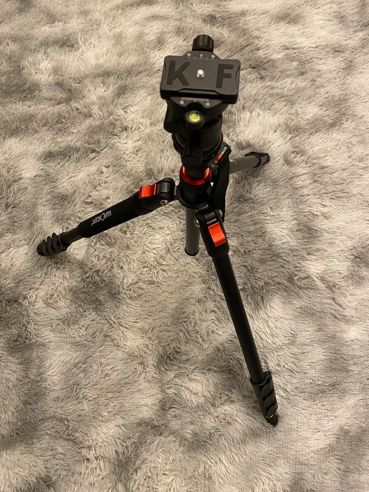 As a starting occasional photographer. Having a decent tripod makes the difference in taking pictures especially those moment which are "uncaptureable". It is very sturdy as it looks on the picture but did not expect it to be as heavy as it is but carriable which i really like the most because i want to be as steady as possible (the alignment on the tripod helps as well). I am using a cannon eos 800d and setting man-heights on this tripod seems to be a great idea when taking portraits and landscape pictures. I also love how the legs can be adjusted in different angles, so the height of the tripod cannot only be adjusted from the neck but also from the legs. I am overall pleased with the tripod from K&F and would recommend it to my fellow coursemates.